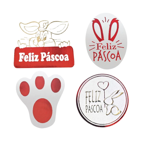 Descrição 400 Adesivos Etiqueta Cliente Redondo 3x3cm de Páscoa 100 UNIDADES DE CADA MODELO para decoração de suas embalagens. Adesivo decorativo auto colante (Não precisa de cola)