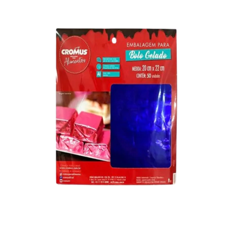Diferença A Papel para Bolo Gelado não é qualquer papel alumínio que você encontra nas lojas de embalagens ou supermercados. Película Protetora Plástico BOPP transparente que se encontra na parte interior do Papel para Bolo Gelado que tem contato direto com o alimento. Por mais que seja extremamente fino, a película é também extremamente resistente tornando o papel muito mais firme. Dispondo de uma superfície anti aderente e impermeável ela garante que manterá seu bolo da mesma forma e cremosidade de quando você o embalou. Diferença entre a Nossa Embalagem, o Papel Alumínio e o Papel Chumbo: Papel Alumínio Convencional ? Não vem em pedaços, você precisa separar para adicionar as fatias, ele amassa ou rasga facilmente e pode deixar seu bolo com aparência não muito chamativa além da limitação de cor. Papel Chumbo ? Extremamente fino e frágil, não tem a espessura necessária para proteger e segurar umidade gerada pelo próprio bolo. Papel para Bolo Gelado ? Próprio para embrulhar bolo de forma segura e prática, é muito mais firme que o alumínio normal, possui um filme protetor que impede que rasgue com facilidade, além disso, esse filme protetor evita vazamento em casos de bolos bem molhados deixando com uma cara mais apresentável. Praticidade A Embalagem para Bolo oferece mais praticidade e faz você não perder tempo tendo que recortar os pedaços de outro tipo de papel para embrulhar, já vem recortados e prontos para uso economizando o seu tempo de preparo e facilitando ainda mais o seu dia.